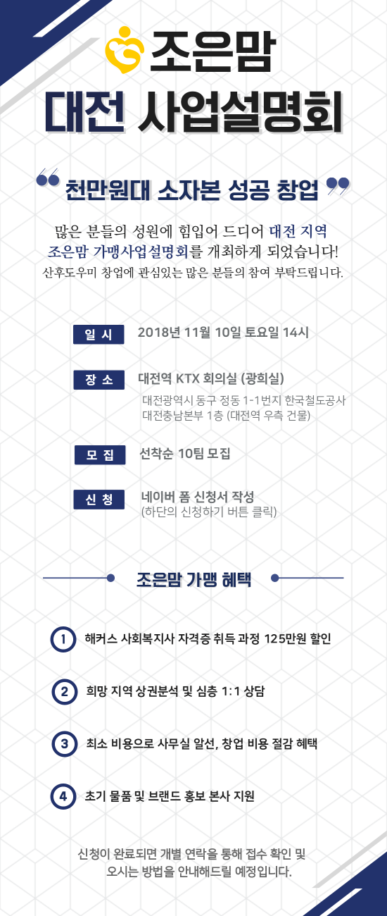대전 지역 조은맘 사업설명회를 개최하게 되었습니다!