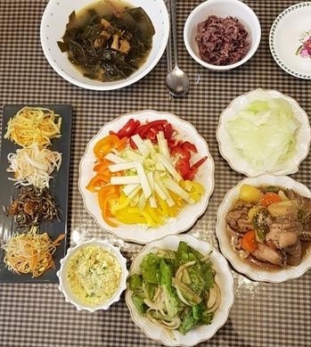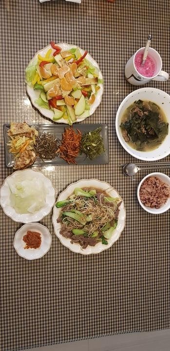 이모님이 낮동안 만들어주신 반찬 꺼내서 밥먹는데 엄청 칭찬하면서 이모님 더 오래오셨으면 좋겠다고했었네요.