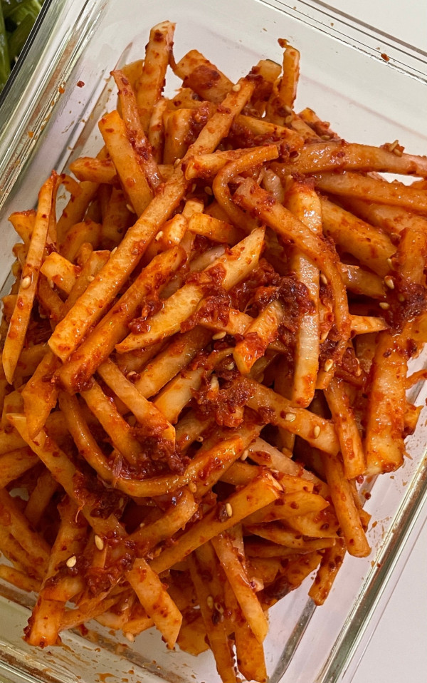 제가 잘 먹는 반찬은 따로 더 만들어 주시고, 파김치는 김치통 한 통을 직접 담가주셨을 정도예요.