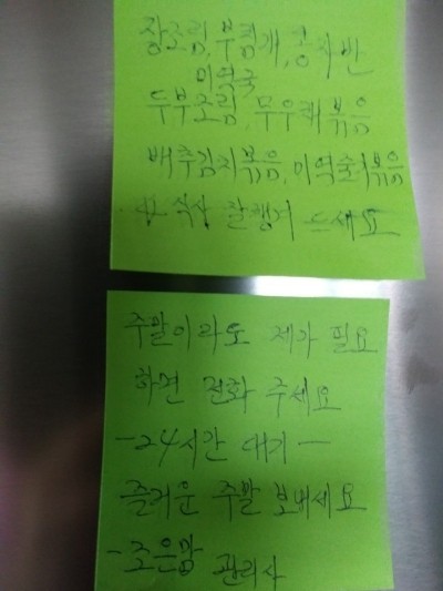 이모님께서 주말 되시기 전에 냉장고에 저렇게 메모를 해놓고 퇴근을 하시구 ㅠㅠ