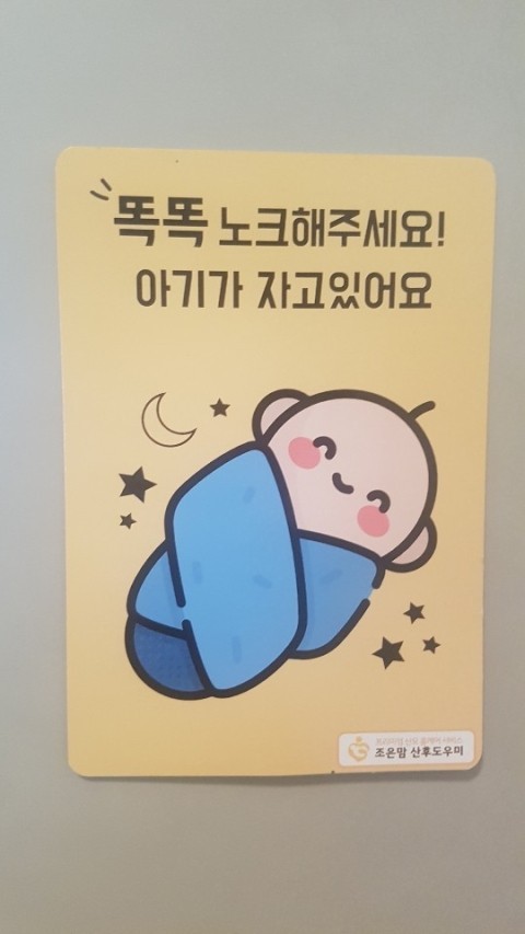 그리고 애기 자는데 방해 될까봐 현관문앞에 스티커도 붙여주시더라구여!ㅎ